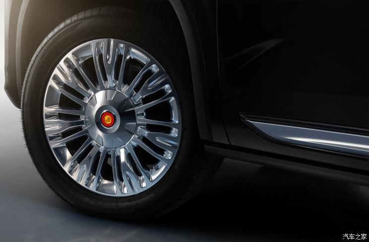 车身侧面,整个车头有着巨大的发动机舱,预示着这款车装载这一颗强大的“芯”,但这并未影响到车身的比例。后部乘用空间的尺寸更大,甚至C柱以后的尺寸已经达到一个半车门的长度。整个车身方正,尽可能保证乘坐空间,车身侧面翼子板上的红旗车标,彰显了尊贵气质。多条辐镀铬轮圈,展现出豪华的气质,轮圈上使用了葵花LOGO,这只有在L车系上才能见到,车门下方还有尊贵的脚踏板。