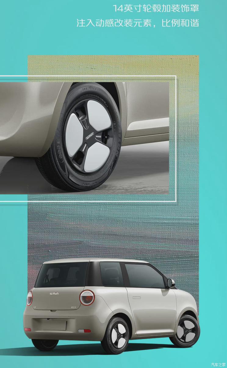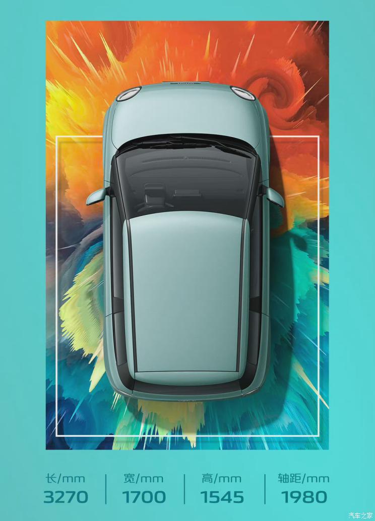 车身侧面来看,新车采用隐藏式门把手设计,提升车辆整体质感。同时,其尾部同样采用十分Q萌的造型,首尾呼应提升车辆辨识度。车身尺寸方面,新车长宽高分别为3270/1700/1545mm,轴距为1980mm。