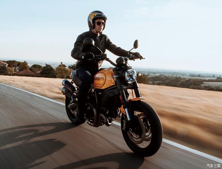 从外观上,我们可以看到新车带有乔治亚罗设计的上世纪70年代Ducati标志,复古经典圆形后视镜、黑色辐条轮圈等均是标志性杜卡迪元素。电控系统方面,新车配备有电子油门系统、三种杜卡迪动力模式、杜卡迪牵引力控制(DTC)EVO系统及博世弯道ABS EVO。