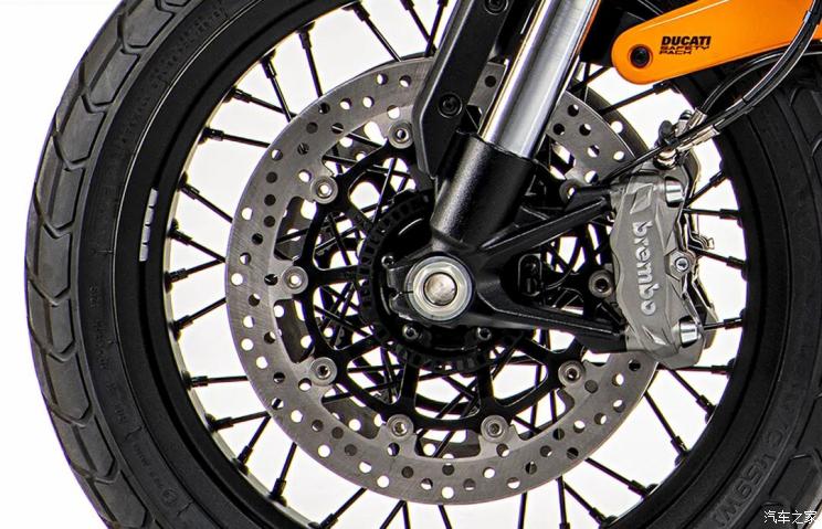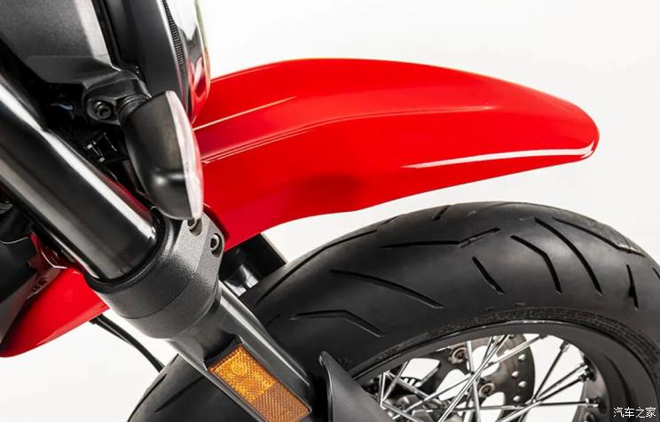 Motard车型标志性的红色高前挡泥板、17英寸辐条轮圈和侧边装饰牌等元素的选择非常明显地参考了滑台车型,扁平座椅与低车把设计对骑手和乘客来说都足够舒适。
