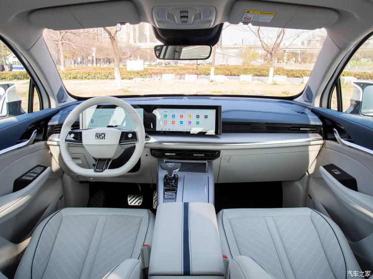 车内设计方面,映入眼帘的是一块12.3英寸的一体式连屏,三辐式方向盘上也印有一个“鲸”字,带来仪式感。其他方面的设计则就比较简洁了。