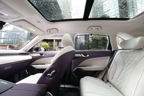 再者就是空间,全家人出行,不仅坐着舒适,更要把东西带全。拿铁DHT-PHEV轴距达到2745mm,头部和腿部空间领先竞品,后排地板进化为近乎纯平设计,充分为孩子考虑,给予后排家庭成员充足的空间灵活性。行李箱容积高达600L,储物空间数量多达30处,满足家庭用户全场景用车需求。此外,第一排座椅可以向后放倒、第二排座椅可以完全向前放平,形成一个纯平空间,与一张双人床尺寸相当。露营时,如果玩累了,躺在车里,透过全景天窗,就可以欣赏星空。