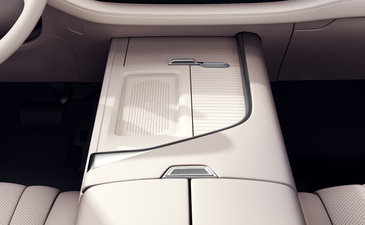 另外,内饰部分还有很多部件采用了“隐藏式”设计,比如中控台木纹饰板与皮质饰板之间的贯穿出风口,中央扶手区前端杯托杯架的“滑盖”,甚至是换挡机构都因为拨杆而“躲”在了方向盘的身后。