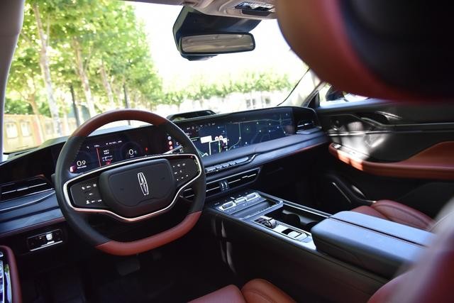 车机系统开机画面就像在太空中遨游,内部卡片式界面显示信息清晰直白,巨大的27英寸中控屏可以将地图的视距看的很远,以“上帝视角”来看前方路况再好用不过了。在高配车型上,林肯香氛、13喇叭锐威音响等享受配置都有提供,保证了智能科技的前提下,豪华氛围也被营造的很足。