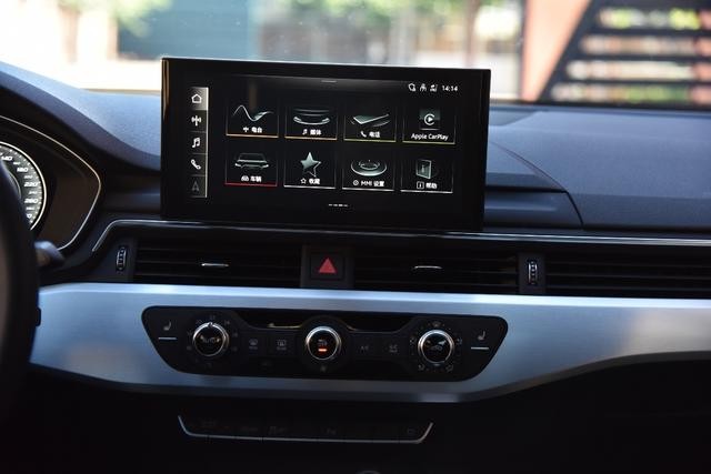 在售的奥迪A4L实际已经卖了6年,所以内饰设计还停留在奥迪的上一代设计风格中,没有使用最新的三屏虚拟座舱,悬浮式中控屏看起来缺少设计感,不过奥迪的MMI系统是很好上手,方向盘多功能按键使用起来非常简单,全液晶仪表的显示信息也非常丰富,中控屏内功能虽然不多,但支持无线CarPlay可以解决很多问题,另外车辆也能下载一些小程序应用。