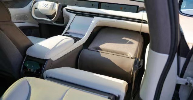 后排右侧全球首款真正的“零重力浮感座椅”, 121°的躺姿夹角重塑了后排舒享水平的新标准。更大的支撑面积让全身的压力分布更均匀,平均压力值仅为0.27 N/cm2,长途行驶腰椎尾椎无负担,乘坐体验远超百万级MPV保姆神车。现场嘉宾进入车内感受零重力座椅后纷纷表示,完全是超级头等舱,坐后排,腿都可以完全伸直,真正的航空级零重力座椅,让老板心甘情愿“躺平”。