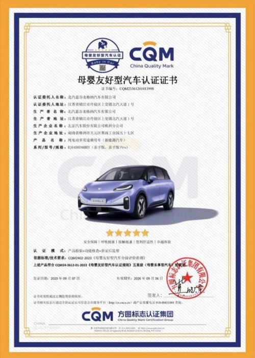 极狐汽车考拉重新定义标准,首创母婴级健康座舱,挑战了最严苛的《母婴友好型汽车》健康标准,得到的结果是认证为宝妈宝宝可以“健康呼吸”的“纯净儿童房”。在国标限制 8 项物质基础上,采用吸附降解技术,新增了对早期儿童发育危害较大的 3 项物质。在国标25℃常温测试下,这11项物质有6 项呈零检出状态,我们经常提及的甲醛含量,仅是售价40 万至60万诸多豪华车的 1/ 3,是国家一类住宅标准的1/14。基于这样的健康实力,考拉最近还获得了“母婴友好型汽车”五星权威认证,成为行业里首个获此殊荣的车型。