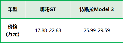 那么我们就来看看哪吒GT(售17.88-22.68万元)与市场中的流量担当特斯拉Model 3(售25.99-29.59万元)相比,各自都有着怎样的特点。