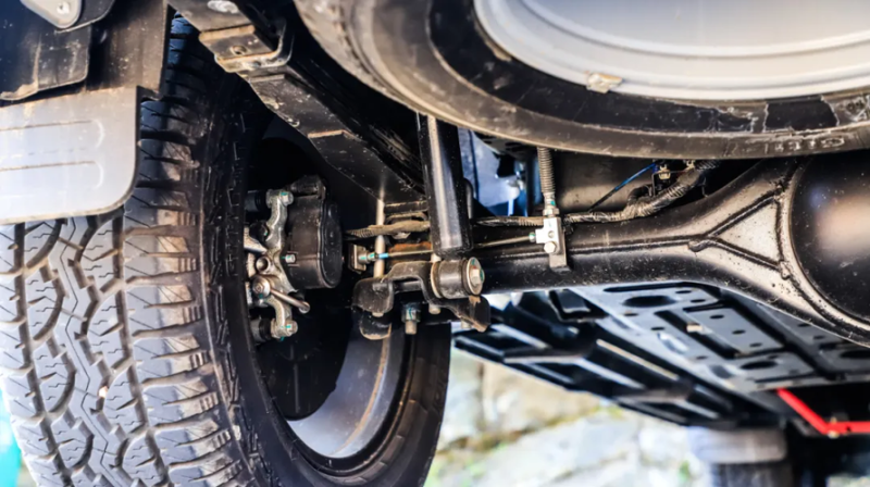 对于商用皮卡而言,开发平台及底盘架构是影响其性能表现的重要因素,它直接关系到车辆的性能稳定性、载货能力及耐用性。在开发平台及底盘架构方面,福田大将军基于先进的P3平台研发,其底盘架构坚实稳固,车架钢板厚实,纵梁截面大,搭配265/65R18的轮胎,提高整车通过性的同时,确保了车辆在复杂路况下的稳定行驶与高效运输。在底盘架构方面,大将军悬架系统采用上置板簧结构,能够更好地吸收和分散路面不平带来的冲击,为驾驶员和乘客提供更加平稳的驾驶体验。
