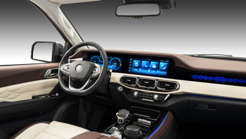 内饰方面,人体工学电动座椅和套色软包乘用化内饰,营造出豪华舒适的驾乘环境;皮质方向盘和座椅则带来愉悦的触觉体验。值得一提的是25款大将军G9双联屏设计集成了液晶仪表盘和中控大屏,让整个仪表台尽显豪华感和科技感,支持4G车联网和语音识别功能,除了智慧导航、远程车辆控制,它还支持实时通讯、音乐、视频等功能可实现,整体实用性非常高。