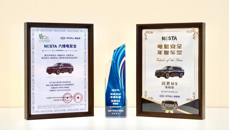 NESTA是国内第一个新能源汽车电安全技术评价体系,是当前对新能源汽车电安全检测项目最全面、测试标准最高的技术体系之一。早在4月份问界M9即获得了NESTA六维电安全认证,此次又获“NESTA电磁安全年度车型”称号,正源于其全方位的安全守护。