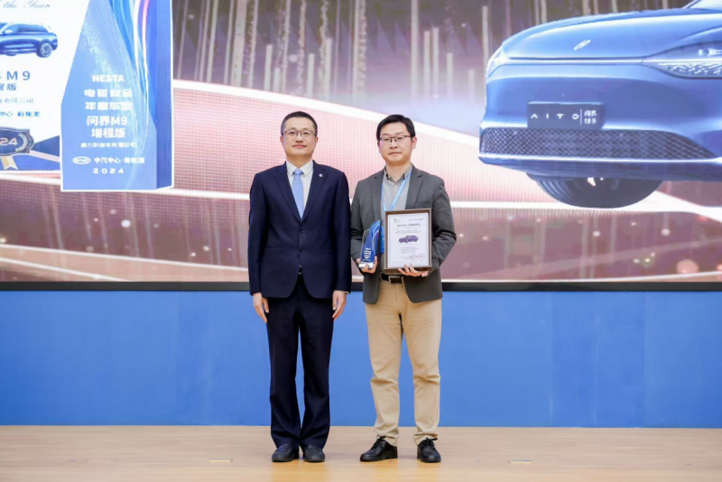 会议现场,中汽研新能源汽车检验中心向NESTA首批验证车型颁发证书,问界M9获颁“NESTA电磁安全年度车型”,强大的安全技术不仅给新能源汽车的电安全验证提供了参考数据,更为用户提供了有力的出行保障。