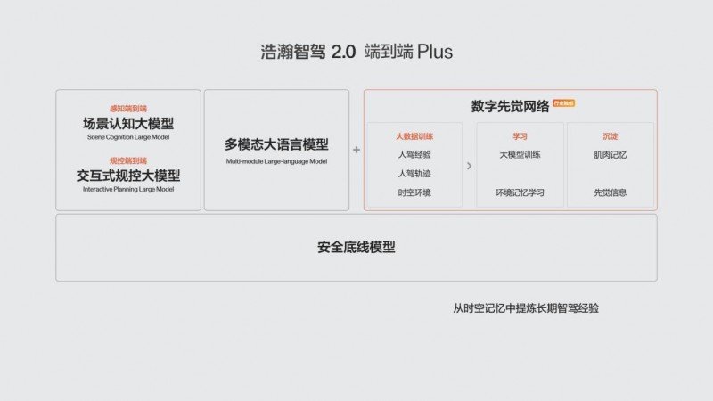 ● 极氪全栈自研浩瀚智驾2.0端到端Plus架构,将原有的场景认知大模型和交互式规控大模型,进化引入了全新的数字先觉网络和多模态大语言模型,让系统犹如本地老司机,表现更胜一筹。