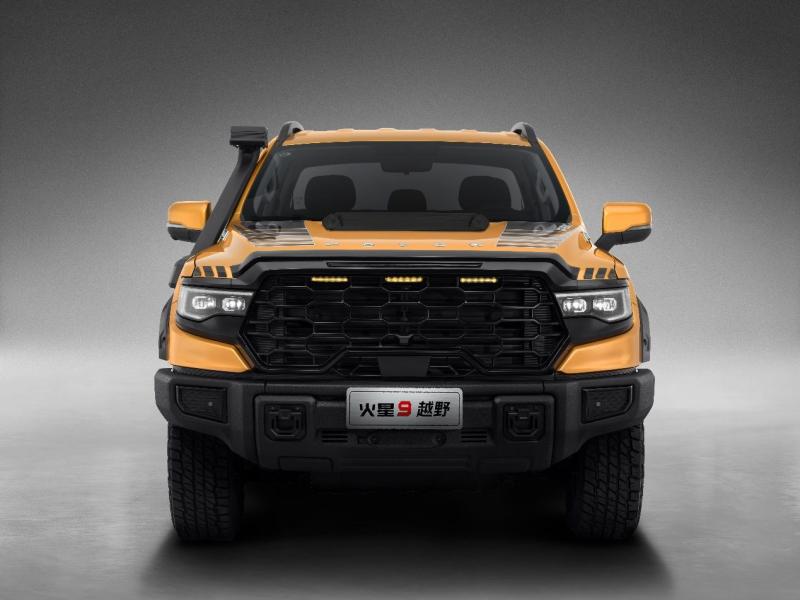 车头部分的设计无疑是火星9越野刀锋版的亮点之一,六边形前格栅中网以其大气而稳重的造型,搭配三段式高强度竞技杠。这种设计不仅提升了车辆的视觉效果,更在功能上增强了前部的防护性能,为越野驾驶提供了更加坚实的保障。而前引擎盖上的3D立体造型出风口装饰件,为车辆增添了更加动感的视觉效果。高位进气涉水喉的设计,则进一步提升了车辆的涉水能力和发动机进气效率,为越野驾驶提供了更加可靠的保障。