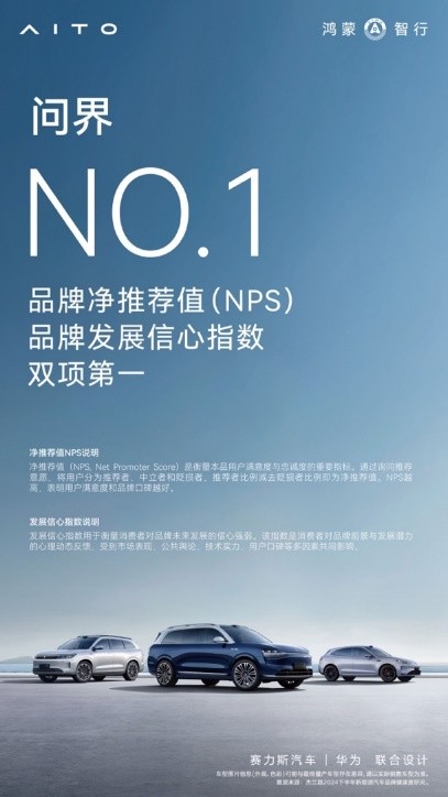 近日,专业咨询机构杰兰路重磅发布《2024年度下半年新能源汽车品牌健康度研究》报告,根据7800多名新能源用户的真实意见,问界在67个主流新能源汽车品牌中脱颖而出,凭借82.0的品牌净推荐值(NPS)高分和用户对其未来发展的“超强信心”,荣获品牌净推荐值(NPS)、品牌发展信心指数“双项第一”。