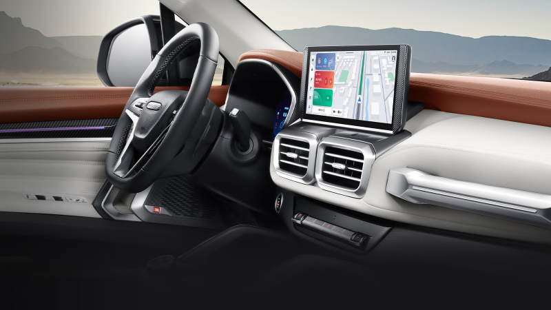 相比之下,上汽大通领地的智能化配置更为先进。配备了双12.3英寸全液晶仪表盘和中控触控屏,支持智能语音控制、车联网、导航系统等功能,极大提升了驾驶的便利性和娱乐性。无论是在日常出行还是越野驾驶时,领地的智能系统都能为驾驶者提供更智能、更便捷的操作体验。