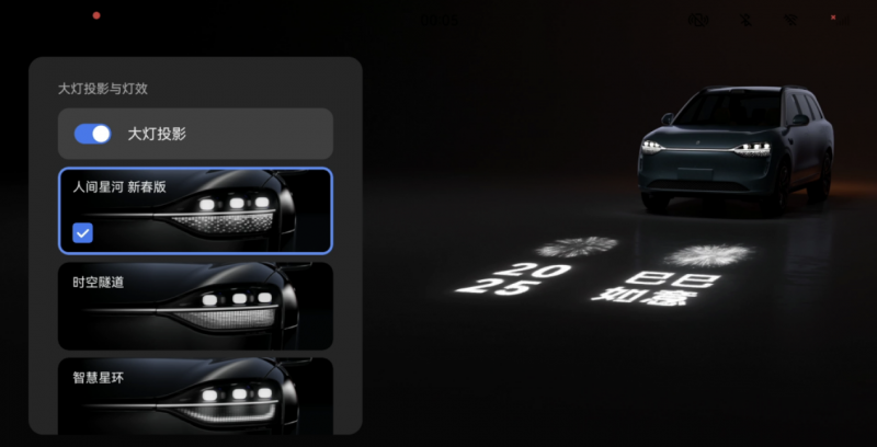 本轮OTA升级的一大亮点,是对智能交互的创新应用。在问界M9百万像素智慧投影大灯赋能下,小游戏可被投影在墙面和地面上,打造出一片虚拟“游乐场”。本次升级后,用户可以利用车灯灯效一起打“财神”地鼠、赢“金蛇迎春”,留存蛇年新春的美好记忆。当用户激活限定版“人间星河 新春版”彩蛋时,新主题大灯投影还会展示2025巳巳如意与烟花灯效,第一时间送上新年祝福。