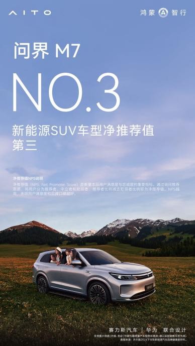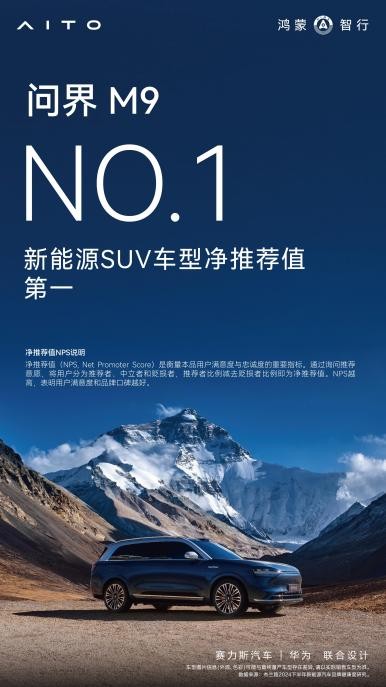 依托强大的产品力和周到贴心的服务,问界收获了坚实的用户口碑和行业的权威认可。问界品牌荣获中国汽研唯一“2024年极北寒测卓越品牌”,问界M9也先后赢得微博“年度最具心智车型”、央视第五届《汽车风云盛典》“风云2024主题车”称号等多项荣誉。另据杰兰路《2024下半年新能源汽车品牌健康度研究》报告,问界荣获品牌净推荐值(NPS)、品牌发展信心指数双项第一,问界M9和问界M7分别荣获新能源SUV车型净推荐值第一和第三。