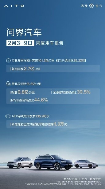 凭借行业领先的智驾能力,问界在春节期间掀起全民智驾潮浪。根据问界官方公布的2025年问界汽车春节出行报告,问界车主总行驶里程达37302万公里,其中智驾总里程达11512万公里,占比40.2%,智驾活跃用户数量达321947人。截至最新数据,问界智驾总里程达15.6亿公里,AEB系统累计触发136.9万次。