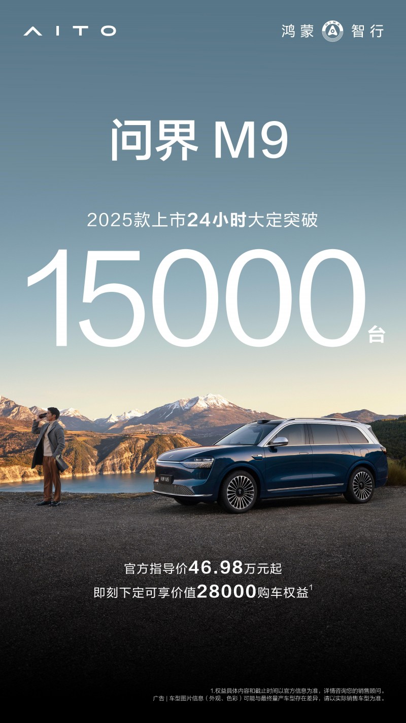 作为赛力斯与华为联合打造的科技旗舰,问界M9 2025款凭借十大亮点重构豪华标准,给外界带来诸多惊喜。数据显示,新车上市24小时大定突破15000台!