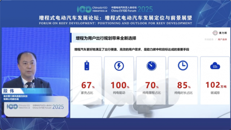 3月28日-30日,中国电动汽车百人会论坛(2025)在北京钓鱼台国宾馆举行。本次论坛以“夯实电动化 推进智能化 实现高质量发展”为主题,汇聚各方重磅嘉宾,围绕新能源汽车领域的未来发展展开研讨。重庆赛力斯集团科技有限公司副总裁段伟以《新能源动力系统的技术创新与实践——赛力斯超级增程系统》为题发表演讲,分享了问界在增程技术应用与实践领域的突破性进展与未来规划。
