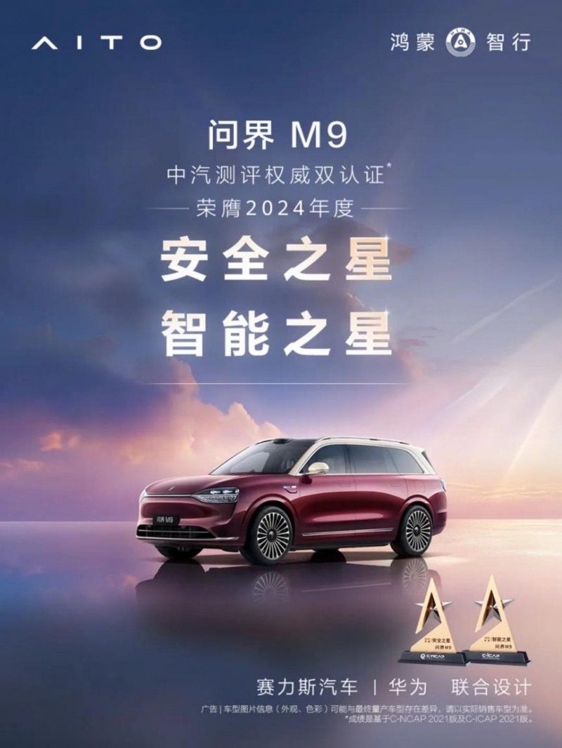 这一系列的成绩和举措,足以证明问界M9的硬核实力,其荣获2024年度“安全之星”和“智能之星”双料权威认证属于实至名归。未来,问界将继续坚持软件定义汽车下的智电融合发展之路,在技术创新和产品升级方面不断深耕,成为全民出行的自豪之选、品质之选、放心之选,为用户打造全新的智能豪华的出行生活。