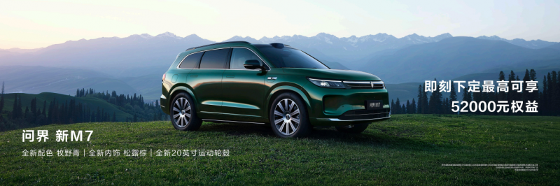 问界新M7全新配色的发布,不仅是一次车身配色的升级,更是表达了问界一心一意造好车、让用户自豪的品牌初心。为回馈用户,官方现推出多重购车好礼,即刻下定问界新M7,至高可享价值52000元限时购车权益,让消费者获得前所未有的购车惊喜。