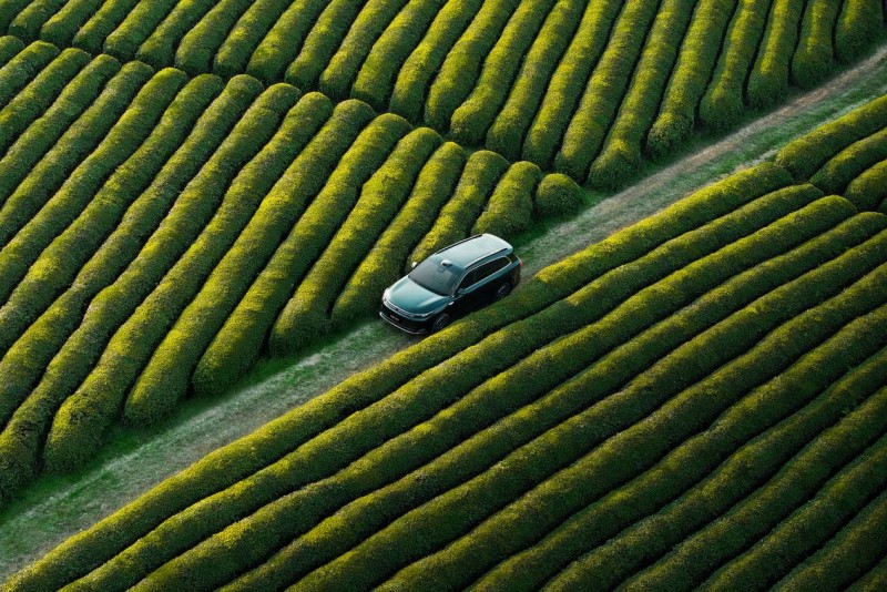 新款车身颜色的设计灵感来源于大自然的沉稳绿调,漆面在自然光线下可随角度变化,呈现出光影流转下的深邃质感,彰显智能科技与自然美学的和谐共生,庄重又不失自然活力。