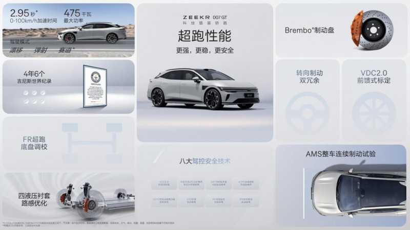 超跑性能:极氪007GT开得快、刹得住、控得稳,享受速度更驾驭速度,极氪式操控创造吉尼斯世界纪录。4年创造6项纪录,极氪不造慢车,造更安全的高性能车。