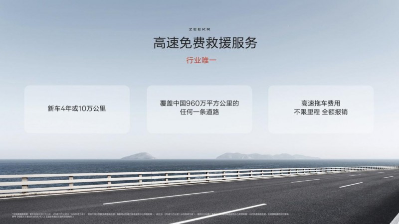 豪华服务,要有引领行业的服务体验。极氪提供全系车型“三电不限里程终身质保”,行业唯一,并在全行业率先取消关于长期停放的全部免责条款。极氪提供高速免费救援服务,行业唯一。新车4年或10万公里内免费道路救援,覆盖全国任何道路,高速拖车费用不限里程全额报销,行业唯一。 还有“1小时快保,24小时快喷”、远程预警诊断及主动提醒、车辆代客值守、免费取送车、免费维保接送等服务,新老用户同享。