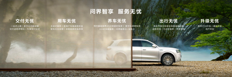 问界智慧服务体系也覆盖到了车辆全生命周期,此前首推基础保养45分钟超时免单的问界智享服务,最近又新增了一站式上牌服务,最快一小时完成,保障交付无忧;新增轻微碰撞、能源耗尽、车被水淹等主动预警服务,保障用车无忧。