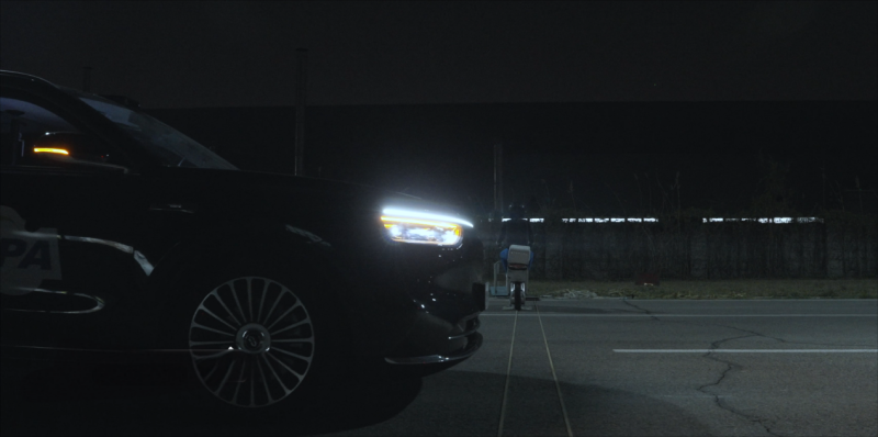 在主动安全测试中,针对夜间场景下的二轮车横穿识别场景,车辆能够捕捉到暗处突然横穿的模拟两轮车辆目标,并做到毫秒级风险识别,主动制动系统触发后,车辆迅速完成紧急制动,验证了全天候主动安全系统的安全防护能力。