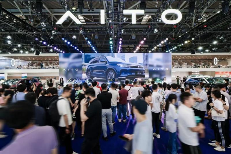 在聚光灯下,问界展台前人头攒动。问界新M7的智能座舱凭借先进功能,成为车展上的“流量密码”,吸引众多观众驻足体验。来自成都的李先生体验后赞不绝口:“没想到一个智能座舱也能玩出花!”