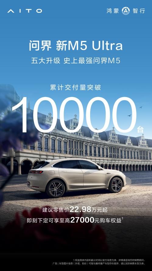 问界新M5 Ultra自上市以来,得益于对年轻消费群体需求的深刻洞察和精准把握,成功实现销量突围,5月单月交付近五千台,2025年累计交付量突破万台。