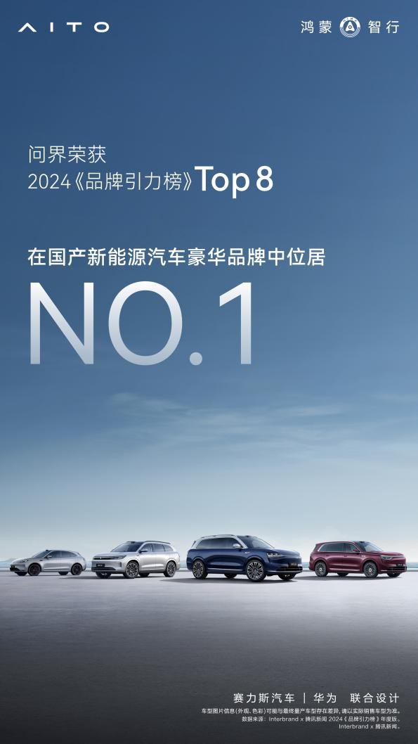 近日,全球性品牌战略管理咨询与设计公司Interbrand英图博略与腾讯新闻联合发布2024《品牌引力榜》年度版。此次榜单容量进一步扩充至60,旨在更为全面地网罗过去一年中最具市场引力的品牌。问界2024年在品牌热活力、品牌交互力、品牌创新力等关键维度表现出强大的势能,符合主办方评估体系中对品牌引力的定义,成功进入榜单TOP8,并在其中排名国产新能源汽车豪华品牌第一名。