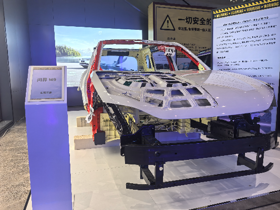 在过往,消费者走进问界线下门店,往往被问界M9的豪华外观与前沿科技配置所吸引。然而,在此次安全展上,白车身结构的直观呈现,让用户得以窥见这款旗舰车型在设计语言背后所隐藏的“硬核安全实力”。