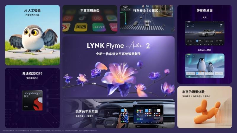 走进座舱,LYNK Flyme Auto 2系统在高通骁龙8295芯片的加持下,带来了前所未有的智能体验。这套系统不仅操作流畅,更具备深度学习和情感感知能力。它能够理解自然语言指令,甚至可以根据用户的情绪状态调整交互方式,让车机从冰冷的工具变成了有温度的出行伙伴。