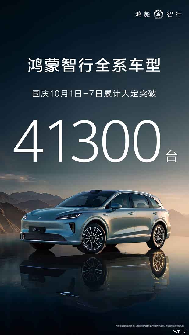 [本站 资讯] 日前,鸿蒙智行发布国庆10月1日-7日订单数据,全系车型共收获超41300个大定订单,日均订单超5900个。