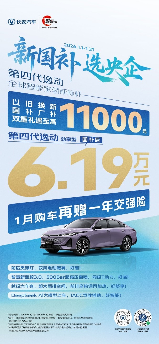 结语:长安逸动荣膺“近一年自主燃油轿车第一名”,是市场对其在变革时代持续提供“高价值解决方案”的充分肯定。在新能源主导与竞争回归价值理性的2025年车市中,逸动的成功印证了:深刻理解用户对可靠、安全与智能的综合需求,并以全域技术实力兑现承诺的产品,始终能赢得市场的核心地位。当下,正值长安汽车“新国补 选央企”活动推进,即日起-2026年1月31日,第四代逸动更推出以旧换新国补厂补双重礼遇至高11000元,劲享型国补后仅6.19万元,1月购车再赠一年交强险,进一步强化其“冠军价值”。对于追求全场景高价值体验的家庭而言,这台集可靠、智能、经济、安全于一身的“全球智能家轿新标杆”,无疑正迎来最佳的入手时机。