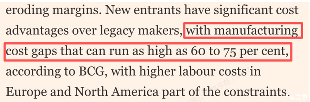 首先,是中国新能源车是真的划算。我们拿数据说话,根据波士顿咨询公司的数据显示,中国新能源车的成本比欧洲本土车企,要低60%到75%。