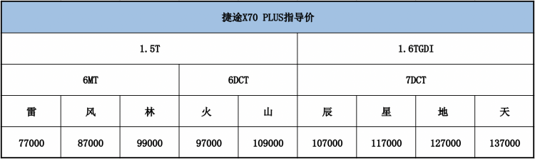 “雷”、“风”、“林”是捷途X70 PLUS 1.5T搭配6MT车型里的三款配置。综合而言,“林”是这三款里最值得推荐的版型,不仅配置丰富且包含许多的同级独有功能,是一款预算在10万内且专注于MT车型,更注重品价比的客户的最优选择。