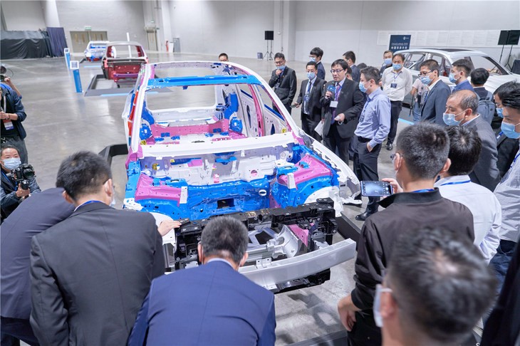岚图汽车2020年7月发布了旗下首款概念车iLand,并在9月发布了旗下首款量产概念车iFree。日前,行车视线获悉,基于iFree打造的中大型智能电动SUV白车身亮相。据悉,岚图汽车中大型高端智能电动SUV基于岚图ESSA智能电动平台打造,提供纯电和增程电动动力选项。车身结构方面,岚图汽车全新纯电中大型SUV采用了全球首创TRB Patch复合结构热成型A柱,并在B柱采用TRB铝硅涂层热成型材料,使车身顶压峰值力达到100kN以上。此外,新车在全球车型中首次采用2000MPa铝硅涂层材料的车门防撞梁,强度达到行业领先水平。更重要的是,此款SUV白车身高强钢占比达75%,其中1500MPa以上热成型比例高达31%,甚至领先于不少德系豪华品牌SUV。