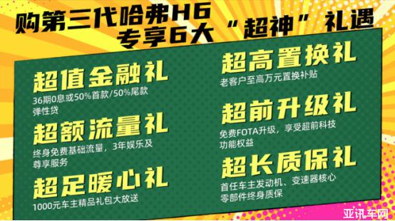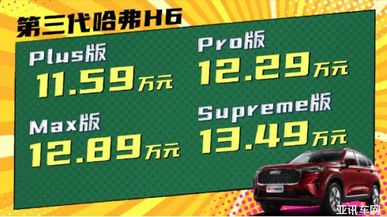 第三代哈弗H6上市的4款车型包括Plus版、Pro版、Max版、Supreme版,价格分别为11.59万元、12.29万元、12.89万元、13.49万元,标配了竞品车型高配及选配才有的配置,打破合资车型的不合理溢价,加上超值金融礼、超高置换礼、超额流量礼、超前升级礼、超足暖心礼、超长质保礼六大“超神”礼遇,牢牢抓住了用户的心。