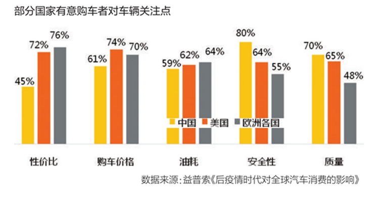 汽车企业在产品研发时首先要进行大量的市场调研,了解目标消费群体的需求,这是产品获得成功的基础,而近年来消费者需求的变化越来越快。2014年的一份 《汽车消费行为调查》显示 ,很大一部分消费者购车时更看重油耗和价格因素,而根据益普索发布的《后疫情时代对全球汽车消费的影响》显示,安全性和质量在中国消费者购车影响因素所占比例分别达到80%和70%,足见消费者需求变化之快。