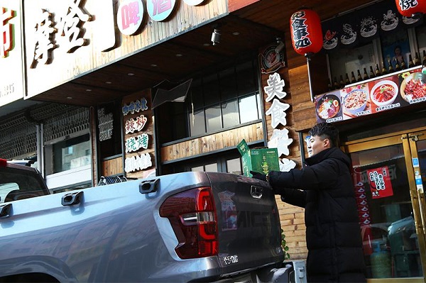 在购车之后,大飞发现长安凯程F70已经超出了自己的预期。作为皮卡来说,载货能力本就是必备属性,长安凯程F70的货箱宽度为1595mm,在行业内处于领先水准。配合上七横两纵高强度钢材打造,让车辆具备一吨级承载及3.5吨拖拽能力。大飞说:“之前也用别的皮卡拉过货,但是都没有长安凯程F70能装,它的货箱宽度将近一米六宽,尤其是在拉整箱啤酒的时候,刚好可以把货箱摆满,装载效率非常高。”
