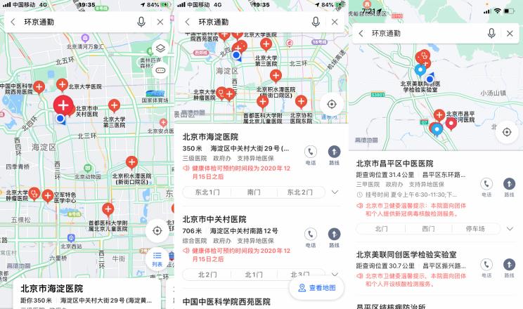 [本站 行业] 为了方便环京地区在京通勤人员及其他有需求人员进行核酸检测,高德地图根据北京市公布的252家核酸检测机构上线了相应的查询功能,输入“环京通勤”即可查询。