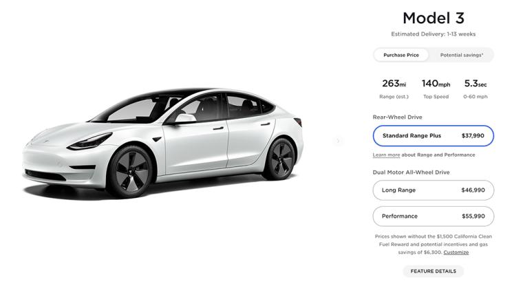 | 特斯拉Model 3 美国市场指导售价 | |||