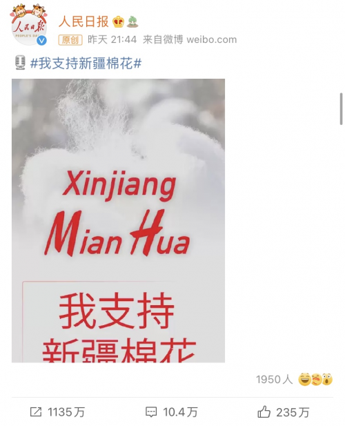 近日,H&M公司碰瓷新疆棉花的消息引起网友的广泛关注。作为世界最大棉花生产地,新疆生产的棉花在色泽、纤维强力上,均高于其他产地棉花,于是逐渐形成“世界棉花看中国,中国棉花看新疆”的产业布局。事件一经曝光,淘宝、京东、部分实体门店,均对H&M品牌进行下架处理,有合作关系的艺人也纷纷解约。不少网友愤慨的同时,更感叹中国轻工业实力的强大。