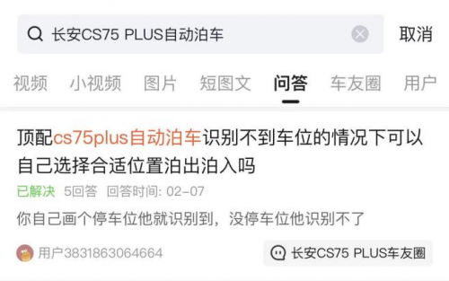 不得不说,横向对比同级车型,它们很难做到如此精准。如同一梯队的长安CS75 PLUS,同为360°全景影像,但由于摄像头像素低、数量相对较少,导致识别精准度受限,尤其在自动泊车功能使用时,需地面有清晰指示才行,否则无法准确停车。