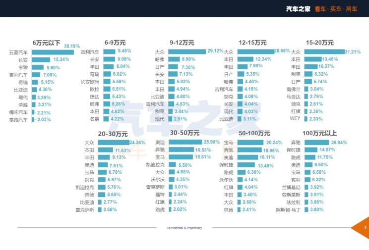 ● 品牌层面:与2月环比变化不大,大众依旧包揽9-30万元价格区间榜首
